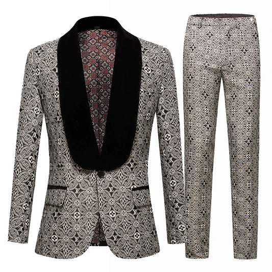 Costume jacquard pour homme, rouge, noir et blanc, robe de soirée de mariage, coupe slim, blazer et pantalon