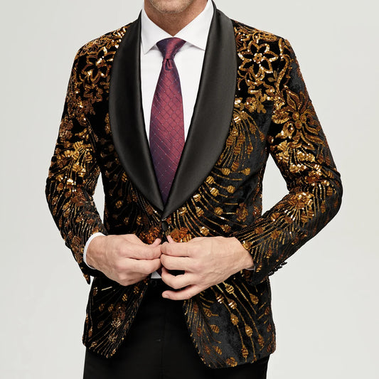 Blazer à paillettes dorées pour homme, coupe slim, un bouton, costume de soirée, mariage, scène