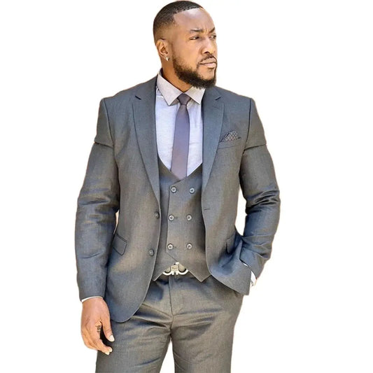 Costume gris sur mesure pour homme, 3 pièces, simple boutonnage, costume de bureau, robe de mariée, vêtements pour hommes