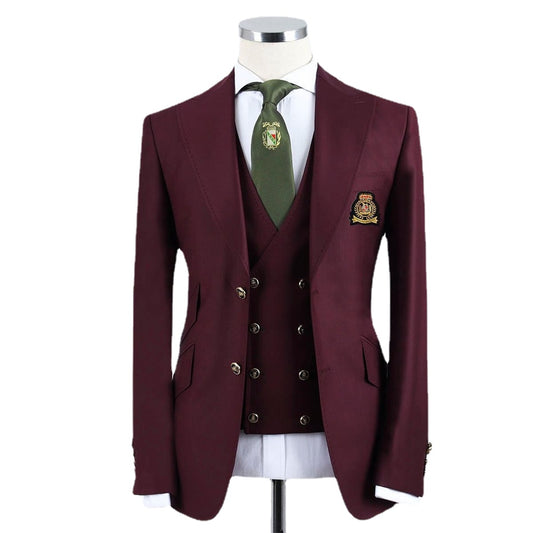 Costume classique bordeaux pour homme, 3 pièces, blazer, gilet, pantalon, tenue de soirée, smoking formel
