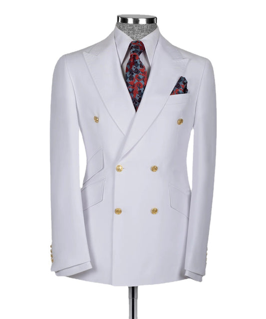 Costume de marié classique à double boutonnage, boutons dorés, blanc, pour fête de mariage, 2 pièces, blazer et pantalon pour homme