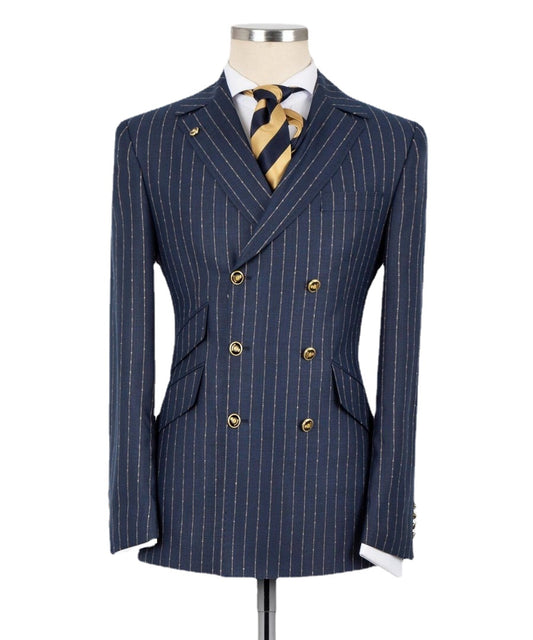 Costume classique à rayures pour homme, smoking croisé pour mariage, marié, 2 pièces, blazer et pantalon, tenue d'affaires formelle, costume de bal de promo