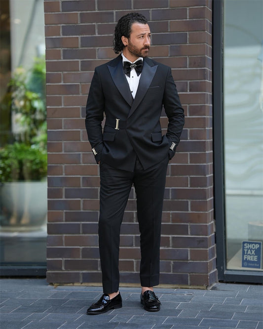 Costume croisé à boucle pour homme, coupe slim, style italien, veste et pantalon, smoking noir pour mariage, bal, soirée, costume formel