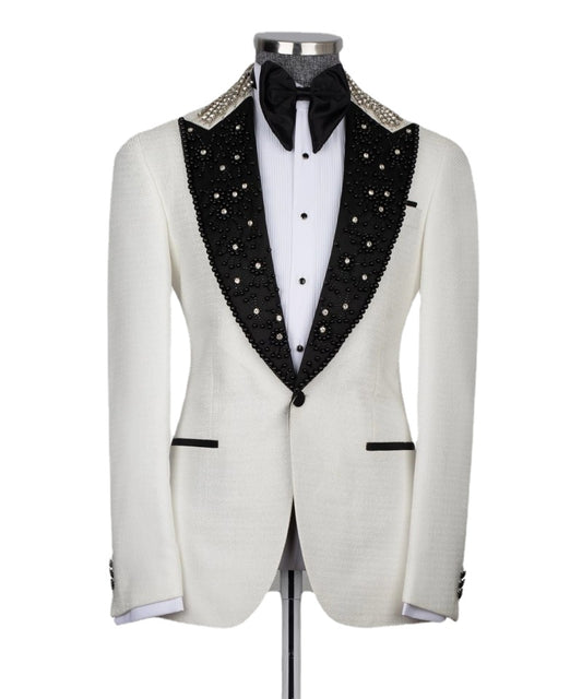 Costume de mariage de luxe pour homme, blazer, gilet et pantalon, 3 pièces, avec perles scintillantes, pour marié, smoking, bal de promo, fête