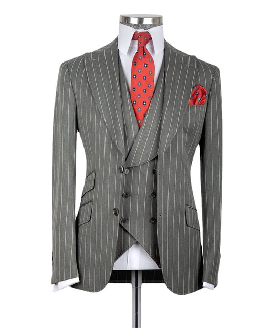 Costume classique à rayures grises pour homme, smoking de mariage 3 pièces, blazer, gilet, pantalon, costume formel pour homme, tenue d'affaires