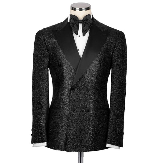 Costume de mariage noir à paillettes avec col en satin, costume de marié formel noir pour homme, coupe slim, blazer et pantalon, tenue d'affaires