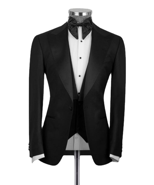 Costume de mariage noir de luxe pour homme, 3 pièces, blazer, gilet, pantalon, sur mesure, pour bal de promo, fête