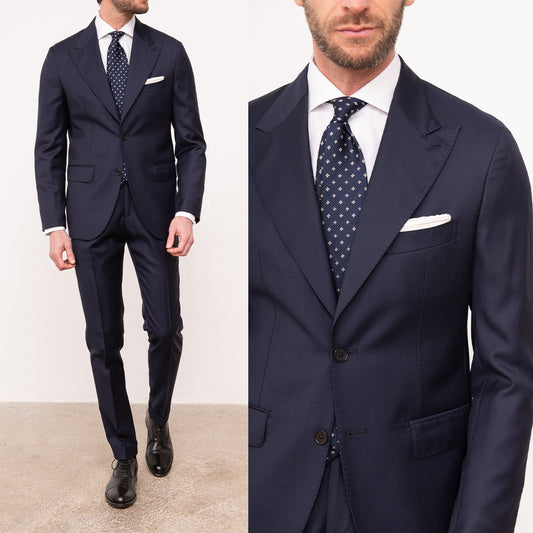 Costume 2 pièces bleu marine en laine pour homme, blazer et pantalon, simple boutonnage, revers en pointe, smoking, costume de mariage moderne pour homme