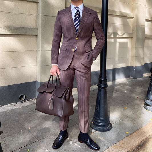 Costume homme 2 pièces blazer pantalon simple boutonnage revers pointu rayures fines mode smoking affaires moderne mariage marié