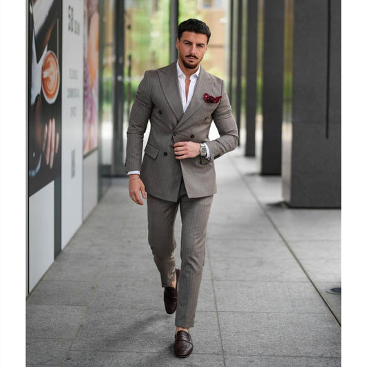 Costume homme 2 pièces blazer pantalon croisé revers pointu affaires rayures fines tenue de travail formelle mariage marié costume homme