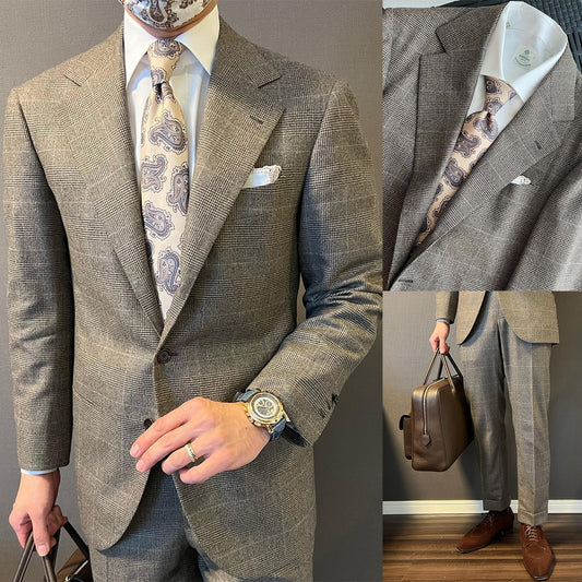 Costume homme 2 pièces blazer pantalon simple boutonnage revers pointu affaires formel écossais rayures mariage marié costume sur mesure homme