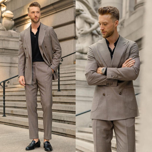 Costume kaki 2 pièces pour homme, blazer, pantalon, veste croisée, smoking tendance, costume de marié moderne pour mariage
