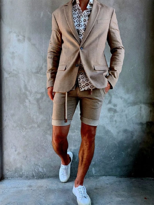 Costume d'été pour homme 2 pièces, blazer, pantalon court, simple boutonnage, revers en pointe, coupe slim, costume sur mesure pour marié