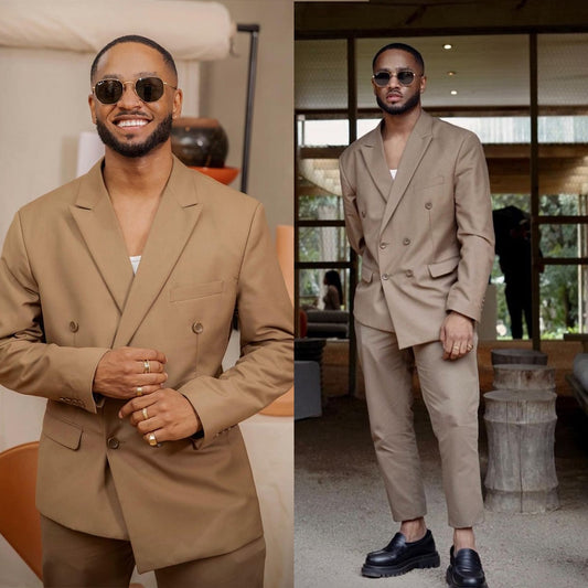 Costume marron 2 pièces pour homme, blazer et pantalon croisés, revers pointus, coupe ample, costume de marié moderne pour homme