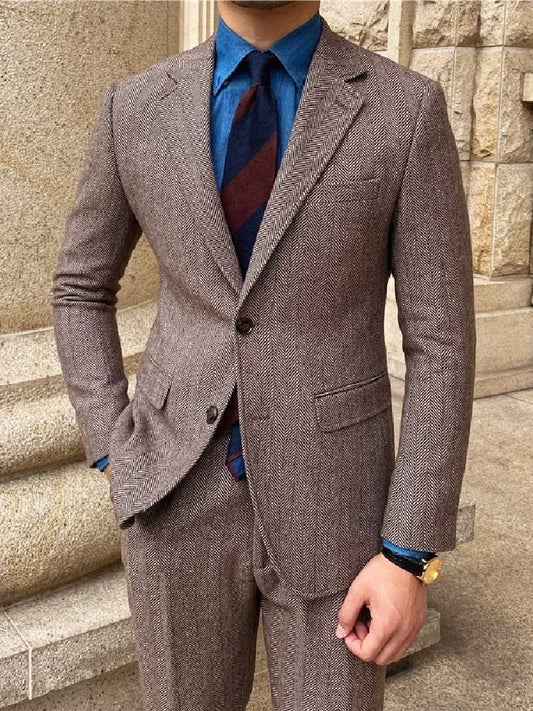 Costume homme 2 pièces à chevrons, blazer et pantalon, simple boutonnage, revers en pointe, smoking, affaires, mariage, moderne