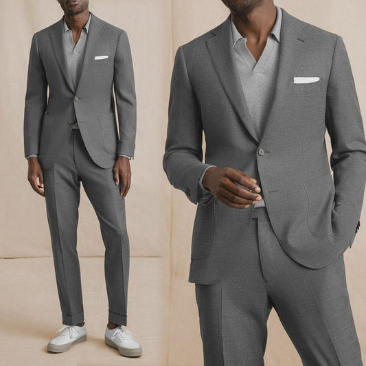 Costume homme gris clair 2 pièces blazer pantalon simple boutonnage revers pointu affaires coupe slim formel mariage marié costume homme