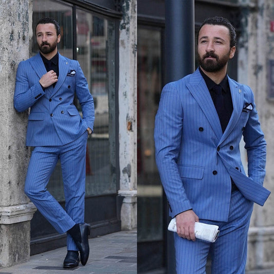 Costume homme moderne 2 pièces blazer pantalon croisé revers pointu affaires rayures fines mariage marié costume sur mesure homme