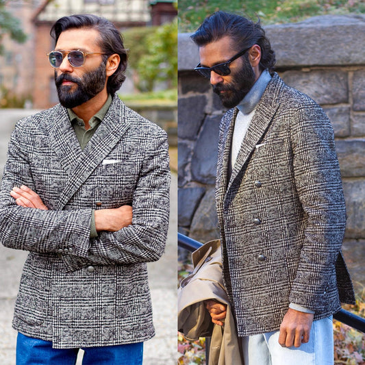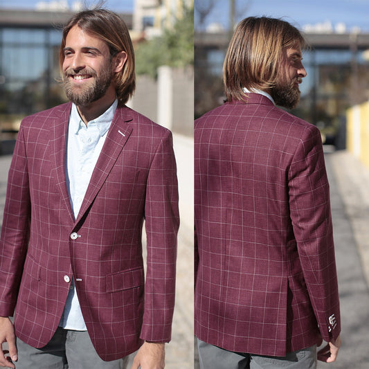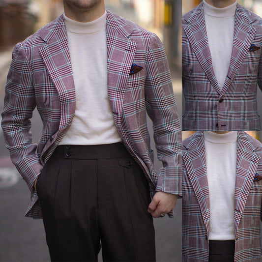 Costume homme une pièce blazer croisé revers pointu affaires carreaux rayures mariage marié costume sur mesure homme