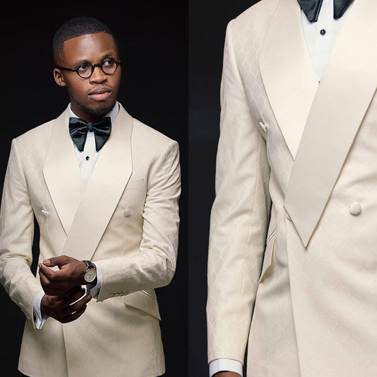 Costume homme ivoire 2 pièces jacquard blazer pantalon un bouton satin transparent revers affaires slim fit mariage marié costume homme