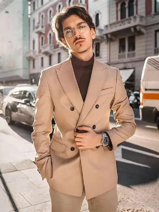 Costume kaki 2 pièces pour homme, blazer et pantalon croisés, revers en pointe, smoking, coupe slim, costume de mariage moderne pour homme