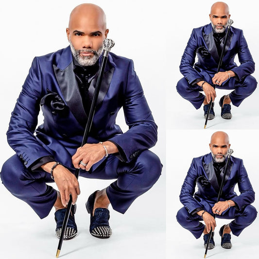 Costume homme 2 pièces blazer pantalon croisé revers pointu affaires formel satin mariage marié costume sur mesure homme