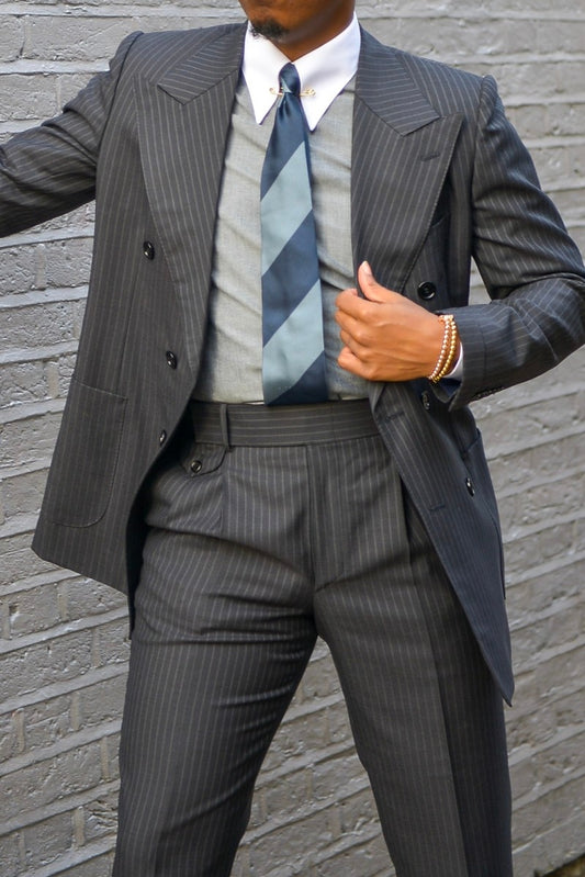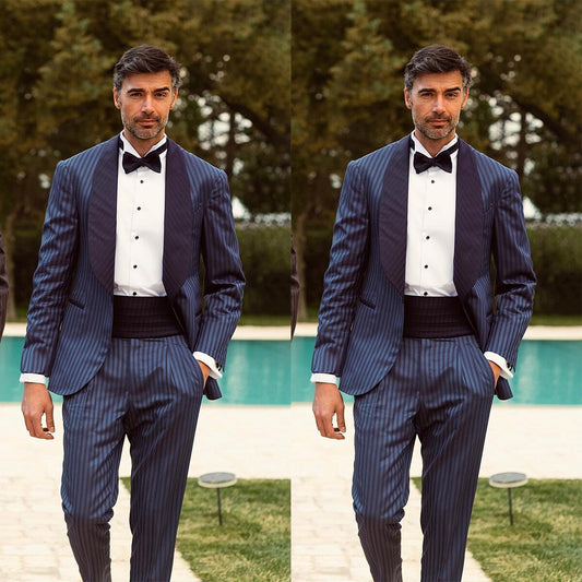 Costume de luxe pour homme, 2 pièces, blazer et pantalon, croisé, revers en pointe, rayures, formel, mariage, marié, sur mesure