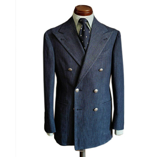 Costume Homme Hommes Denim Smokings Sur Mesure Double Boutonnage Revers en Pointe Blazer Décontracté Affaires Fête Manteau Mariage Marié