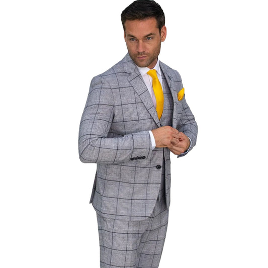 Costume gris pour homme 3 pièces, blazer, gilet, pantalon, simple boutonnage, revers en pointe, smoking, affaires, carreaux, rayures, mariage, costume de marié