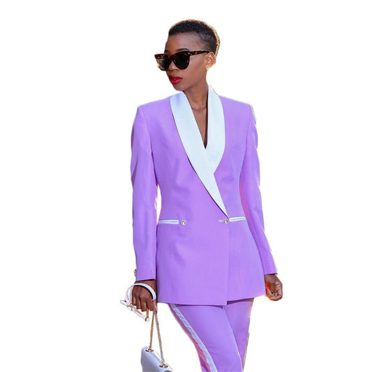 Ensemble 2 pièces violet pour femme, blazer et pantalon, pour le travail, pour une fête de mariage, sur mesure