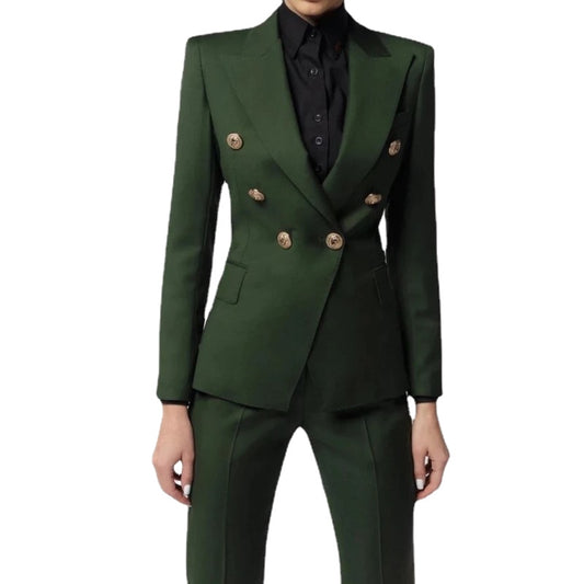 Costume de bureau vert foncé pour femme, coupe slim, blazer, tenue de soirée, sur mesure, tenue de mariage, tenue quotidienne, 2 pièces