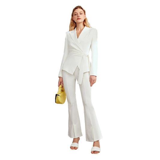 Costume de mère de la mariée blanc pour femme de bureau, ensemble 2 pièces sexy à jambes larges et pantalon avec ceinture, sur mesure