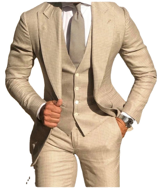Ensemble 3 pièces à carreaux pour homme, costume de mariage, blazer d'été (veste, pantalon et gilet)