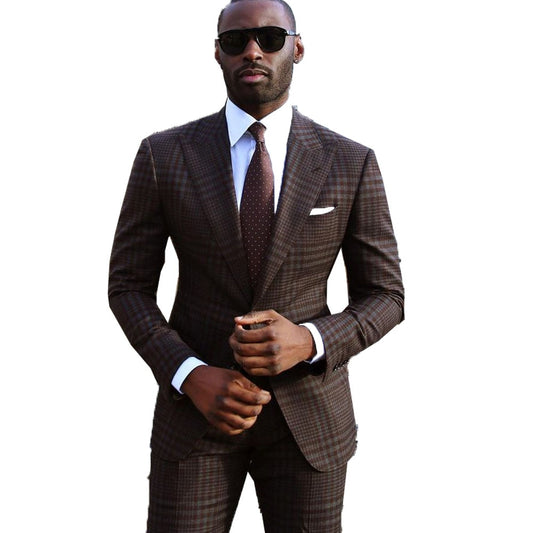 Costume Homme 2 Pièces Damier Carreaux Deux Boutons Slim Fit Formel Affaires Mariage Décontracté Bal