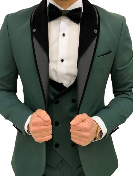 Costume de smoking pour homme, 3 pièces, veste, gilet et pantalon, pour mariage, formel, blazer, écharpe verte