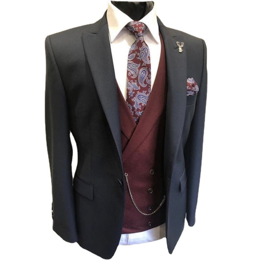 Costumes pour hommes, gilet noir, smoking bordeaux, pantalon de mariage, blazer, costumes slim personnalisés, robe de bal, 3 pièces, veste + gilet + pantalon