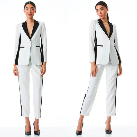 Blazer blanc et noir pour femme, tenue de soirée ample, tenue de mariage, 2 pièces