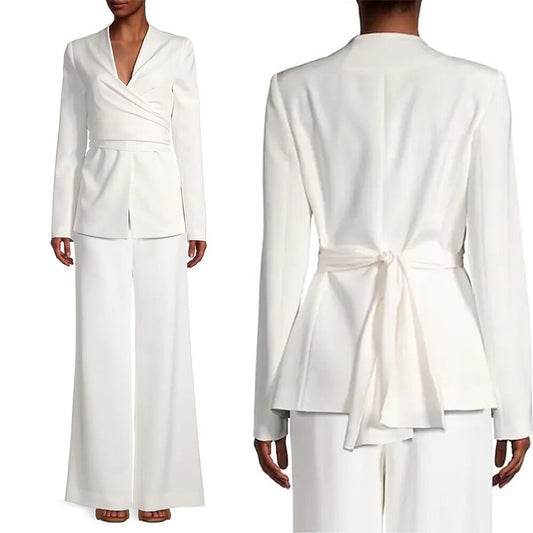 Blazer de style urbain pour femme avec ceinture, manches longues, tenue de mariée, tenue de soirée décontractée, tenue de mariage (veste + pantalon)