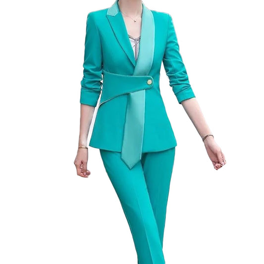 Ensemble 2 pièces pour femme, pantalon slim, couleur assortie, pour bal de promo, mariage