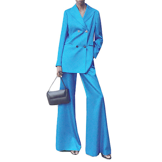 Ensemble 2 pièces pour femme, pantalon ample, décontracté, bleu, pour mariage, bal, soirée, fête, jambes larges