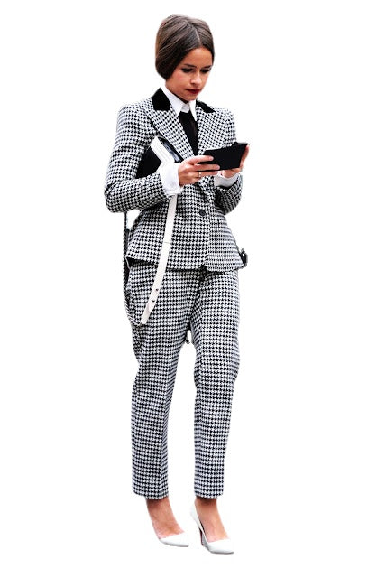 Ensemble 2 pièces à carreaux d'hiver, blazer vintage pour femme, smoking de mariage, pantalon taille haute