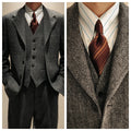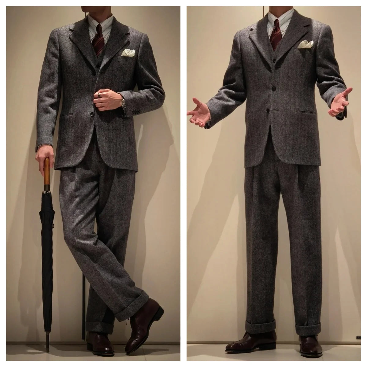 1930s Retro Herringbone Men's Single-breasted 3-piece Suit Thick Style for Autumn and Winter Wool Formal Elegant Banquet Suit
