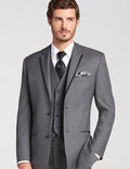 Costume de mariage gris pour homme 3 pièces (veste + pantalon + gilet + cravate) sur mesure, coupe slim.