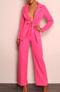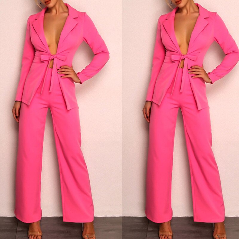 Costume pantalon rose pour femme, costume de soirée, col en V profond, pour mère de la mariée