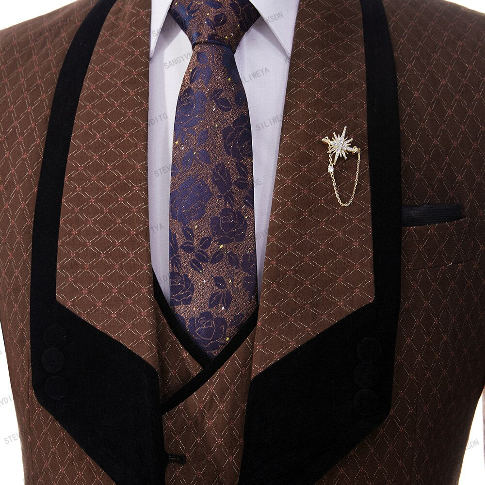 Costume de mariage 3 pièces pour homme, smoking à revers châle (veste, pantalon, gilet)