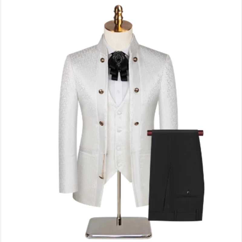 Wedding Host Performance Men's Suit Dress Three-piece Botanical Floral Pattern Blazer for Men with Pants and Vest
