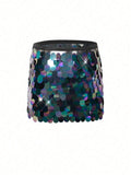 Sexy Mini Skirt Shiny Sequin Glitter High Waist Skirts for Woman Summer Fashion Streetwear Chic Hot Blue and Black Dance