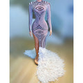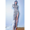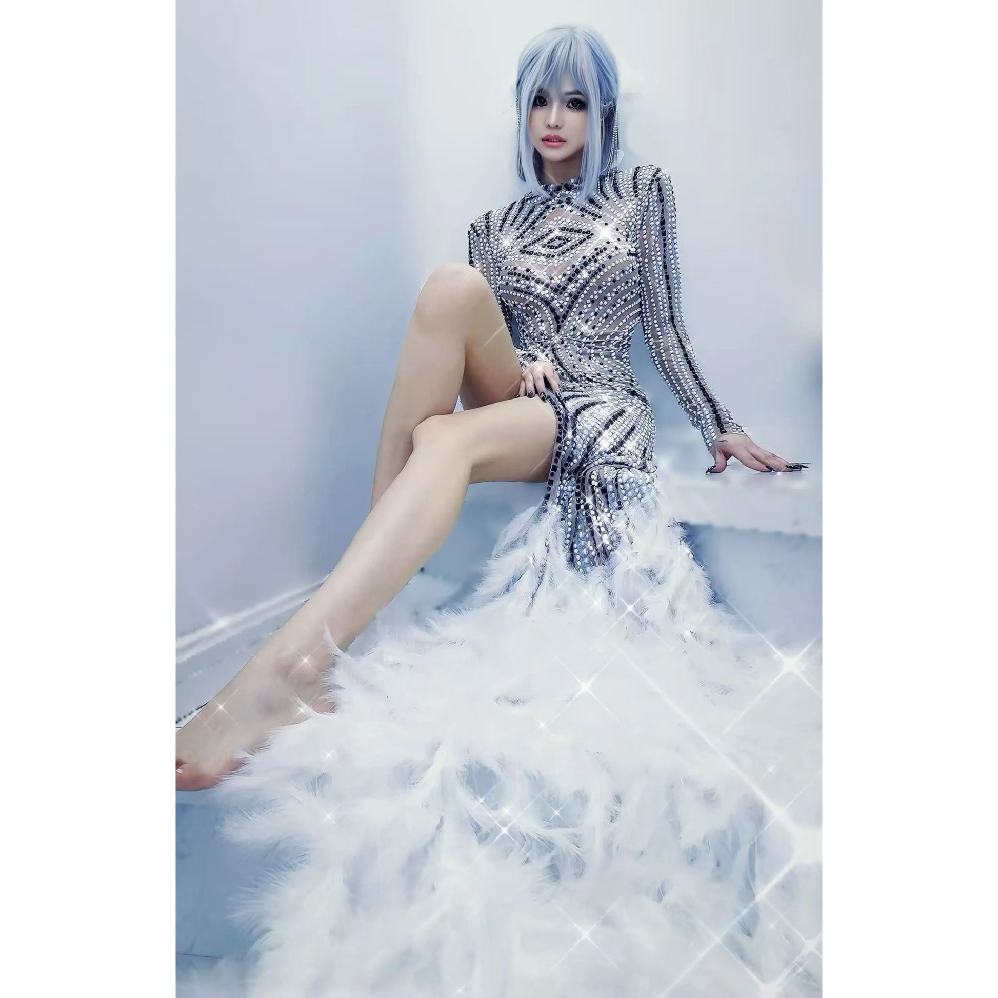 Sexy Stage Costumes Diamond Feather Trailing Dress Nightclub Bar Dj Performance Singer Gogo Dancer Festival Clothes