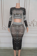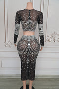 Ensemble deux pièces sexy et extensible avec strass scintillants pour femme, tenue de soirée, de discothèque, de scène, pour célébrer un anniversaire