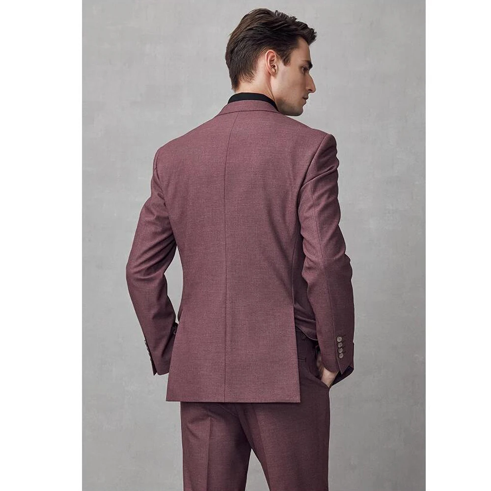 Ce costume trois pièces tendance à revers en pointe et de couleur unie présente une coupe ajustée, idéale pour les tenues décontractées, les mariages et les événements formels. Il comprend un blazer, un gilet et un pantalon, apportant une touche de sophistication à l'ensemble.