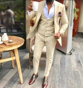 Costume kaki formel 3 pièces pour homme, coupe slim, smoking de mariage, ensemble de costume de bal de promo en lin